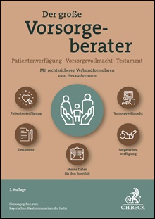 Der Vorsorgeberater ist überall im Buchhandel unter der Buchnummer ISBN 978-3-406-83909-2 zum Preis von 19,90 € (ab 10 Exemplaren gibt es einen Mengennachlass) erhältlich. Bitte wenden Sie sich an Ihre Buchhandlung oder direkt an den Verlag C.H. Beck, Wilhelmstraße 9, 80801 München, Tel: 089/38189750, Fax: 089/38189-358 oder E-Mail: bestellung@beck.de. Sie können die Broschüre weiterhin kostenlos als pdf-Dokument herunterladen und für den privaten Bereich ausdrucken.