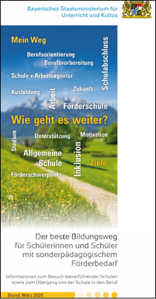 Diese Broschüre ist die Weiterführung der entsprechenden Veröffentlichung "Der beste Bildungsweg für mein Kind mit sonderpädagogischem Förderbedarf. Informationen zur Einschulung". Sie stellt alle relevanten Informationen zum schulischen Weg von Kindern mit sonderpädagogischem Förderbedarf nach der Grundschule bzw. beim Übergang von der Schule in den Beruf zusammen. Dies ist zum einen die Darstellung der vielfältigen Bildungswege im bayerischen Schulsystem unter den Aspekten Schularten, Abschlüsse, Maßnahmen der Berufsorientierung, Anschlussmöglichkeiten, Berufsausbildung etc. Zum anderen bietet die Broschüre Informationen zur Unterstützung durch die Arbeitsagentur und durch andere außerunterrichtliche Unterstützungssysteme. Außerdem sind eine Checkliste für die Schulentscheidung sowie Hinweise und Kontaktdaten für Beratungsangebote verschiedener Ansprechpartner enthalten.Weitere Informationen erhalten Sie hier