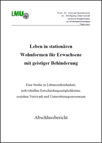 Der Abschlussbericht zur Studie zu Lebenszufriedenheit, individuellen Entscheidungsmöglichkeiten, sozialem Netzwerk und Unterstützungsressourcen enthält Informationen über die Lebenssituation von Erwachsenen mit geistiger Behinderung vor dem Hintergrund unterschiedlicher stationärer Wohnformen in Bayern| Herausgeber | : | Staatsministerium für Arbeit und Sozialordnung, Familie und Frauen |