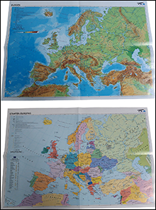Die ca. 58 cm x 41 cm große Europakarte zeigt auf einer Seite das politische Europa mit Informationen zur EU und auf der anderen Seite Europa in physischer Darstellung. Die Karte, die im DIN A4-Format gefaltet ist, kann sowohl als Wandkarte als auch als Handkarte verwendet werden. Aufgrund ihrer übersichtlichen Größe lässt sie sich gut zur Kartenarbeit einsetzen.Bitte beachten Sie folgende Hinweise: