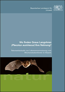 Diese Veröffentlichung fasst die Ergebnisse einer Studie zur Raum- und Habitatnutzung des Grauen Langohrs zusammen. Basierend auf den im Jahresverlauf zur Nahrungssuche genutzten Landschaftselementen werden Empfehlungen zum Schutz dieser streng geschützten Tierart gegeben.| Herausgeber | : | Bayerisches Landesamt für Umwelt |
