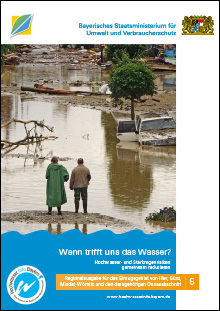 Für Bayern wurden zehn regionale Varianten der Broschüre "Wann trifft uns das Wasser? Hochwasser- und Starkregenrisiken gemeinsam reduzieren" erstellt: