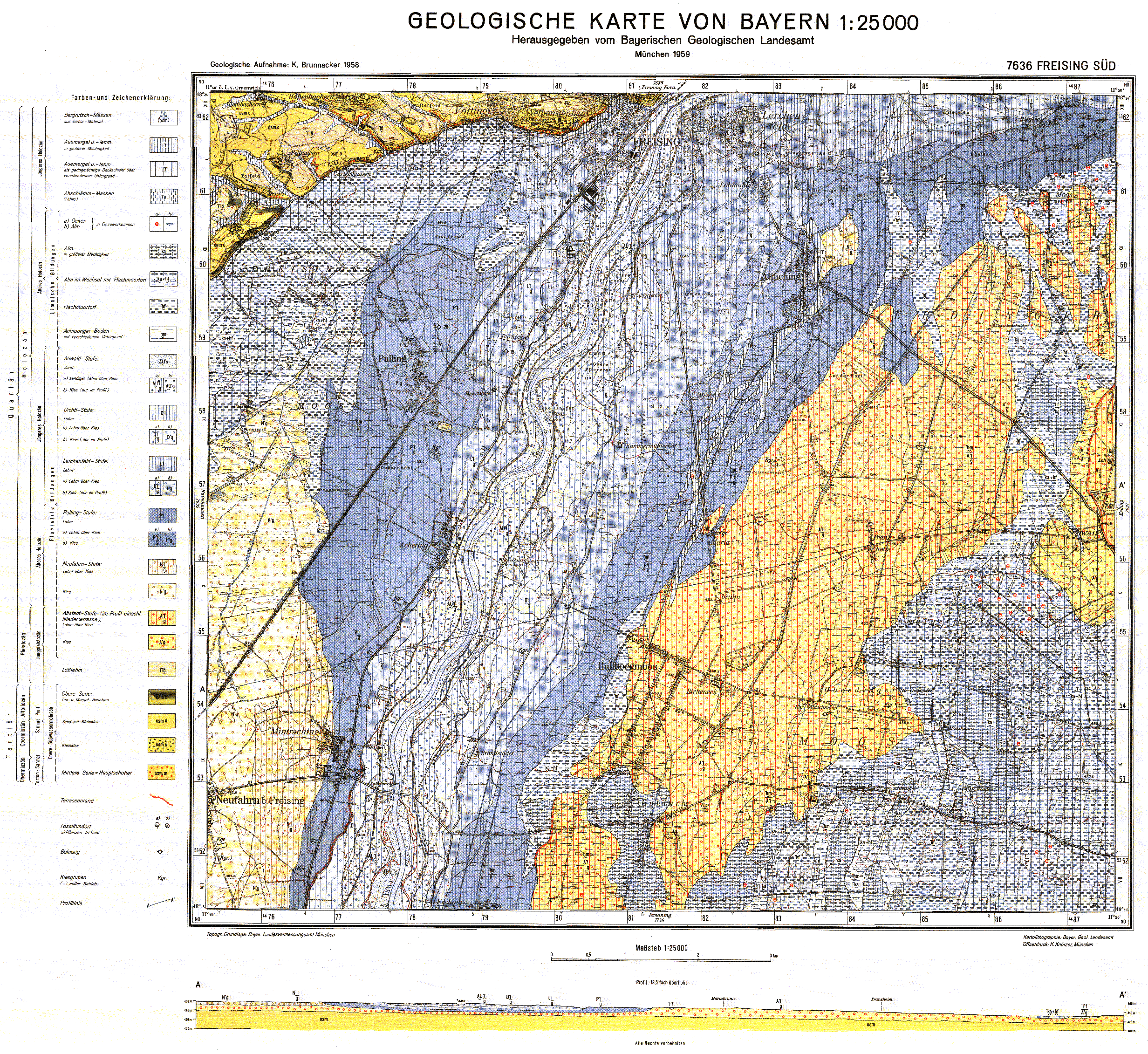 Geologische Karte m. Erläuterung 1:25 000 7636 Freising Süd