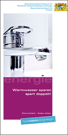 Das Faltblatt zeigt Ihnen verschiedene Möglichkeiten auf, wie Sie zuhause Warmwasser einsparen können. Neben wassersparenden Techniken zum Nachrüsten finden Sie auch weitere praktische Tipps für den Alltag und zur Optimierung des Gesamtsystems.| Herausgeber | : | Bayerisches Landesamt für Umwelt |