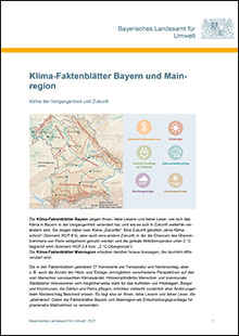 In den Klima-Faktenblättern werden ausgewählte Kennwerte tabellarisch für Bayern insgesamt sowie seine sieben Klimaregionen: Alpen, Alpenvorland, Südbayerisches Hügelland, Donauregion, Mainregion, Ostbayerisches Hügel- und Bergland und Spessart-Rhön dargestellt.