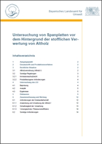 Der Rohstoff Holz ist eine werthaltige Ressource. Die (mehrfache) stoffliche Nutzung von Altholz vor der abschließenden energetischen Verwertung ist deshalb zunächst im Sinne der Schonung von Ressourcen - jedoch nur, soweit gleichzeitig die Risikovorsorge in Hinblick auf eine mögliche Schadstoffanreicherung berücksichtigt wird.Das LfU hat eine Untersuchung von handelsüblichen Spanplatten durchgeführt. In der Publikation werden die ermittelten Stoffgehalte dargestellt und bezüglich abfallwirtschaftlicher Anforderungen sowie auf der Grundlage angrenzender Rechtsbereiche betrachtet.