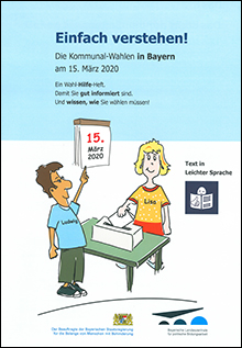 Wahlen zum Gemeinde-, Stadtrat und zum Kreistag gehen jeden etwas an. Denn deren Mitglieder entscheiden über vieles, was direkt in unserem Wohnort, in unserer Region - also den Gemeinden und Landkreisen - geschieht. Die Kommunalwahlen in Bayern eröffnen besondere Chancen, weil der Wähler in Bayern vielfältige Möglichkeiten hat, seine Stimmen zu vergeben. Deshalb ist es sehr wichtig zu wissen, wie man wählt.In diesem Heft zur Kommunalwahl 2020 finden Sie in "Leichter Sprache" Informationen über die Kommunen, wer wählen darf und wie die Wahl des Bürgermeisters, Landrats und der Mitglieder des Gemeinderats und Kreistags abläuft.