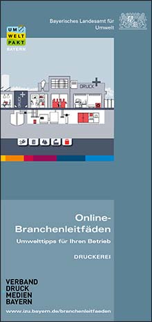 Jedes Unternehmen kann zum Umweltschutz beitragen: Abfälle trennen, Emissionen vermeiden, Ressourcen schonend einsetzen - dies sind nur einige Beispiele für betrieblichen Umweltschutz. Unsere Online-Branchenleitfäden, die in Zusammenarbeit mit den Fachverbänden entstanden sind, zeigen Ihnen praktische Maßnahmen und geben Hinweise zu rechtlichen Vorschriften. Das Angebot richtet sich insbesondere an kleine und mittlere Unternehmen und Handwerksbetriebe aus den Branchen Bäckerei, Druckerei, Einzelhandel, Friseur, Gebäudereinigung, Kfz-Werkstatt, Metallhandwerk, Müller, Fleischerei und rohstoffgewinnende Betriebe.Der Flyer beschreibt beispielhaft das Online-Angebot für die Druckerei, welches Sie unter folgendem externen Link www.izu.bayern.de/branchenleitfaeden finden.