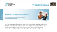 Das Merkblatt für Eltern und Jugendliche informiert über die gesetzlichen Vorgaben zu den Jugendarbeitsschutzuntersuchungen und erklärt den Umgang mit den für die Durchführung der Untersuchungen notwendigen Unterlagen, wie z. B. den Untersuchungsberechtigungsscheinen und den Erhebungsbögen.| Herausgeber | : | Bayerisches Staatsministerium für Familie, Arbeit und Soziales |