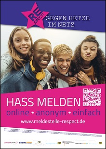 Die Bayerische Staatsregierung kooperiert mit der Meldestelle REspect!, um strafbaren Hass und Hetze im Internet möglichst umfassend zur Kenntnis der Strafverfolgungsbehörden zu bringen. Der Flyer/das Plakat soll das Angebot von REspect! in der Öffentlichkeit zusätzlich bekannt machen.Erscheinungsjahr | : | 2023 |