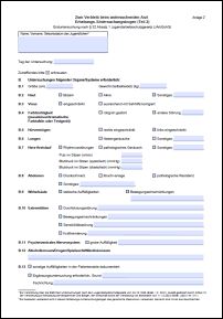 Der Untersuchungsbogen dient den Ärztinnen und Ärzten dazu, die Ergebnisse einer Erstuntersuchung nach dem Jugendarbeitsschutzgesetz zu dokumentieren.| Herausgeber | : | Bayerisches Staatsministerium für Familie, Arbeit und Soziales |