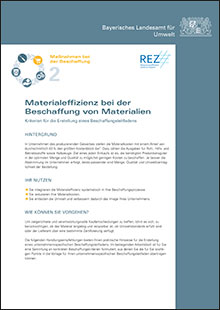 Der Leitfaden "Materialeffizienz bei der Beschaffung von Materialien" dient als Hilfestellung für den Einkauf, um Produktionsgüter in optimaler Menge, hoher Qualität und zu möglichst geringen Kosten zu beschaffen. Im dazugehörigen Arbeitsblatt werden umwelt- und produktspezifische Kriterien für eine umweltfreundliche Beschaffung von Materialien evaluiert. Mit Hilfe der Vorlage können die Ergebnisse zur Erstellung eines Beschaffungsleitfadens für Materialien genutzt werden.| Herausgeber | : | Bayerisches Landesamt für Umwelt |