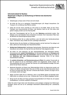 Informationsblatt für Muslime - Regelungen in Bayern zur Schlachtung im Rahmen des islamischen Opferfestes - in deutscher Sprache