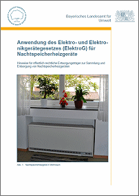 Inzwischen ist klargestellt, dass Nachtspeicherheizgeräte dem Elektro- und Elektronikgerätegesetz (ElektroG) unterliegen. Diese Hinweise zur Anwendung des ElektroG geben öffentlich-rechtlichen Entsorgungsträgern, Abfallbesitzern sowie Rückbau- und Entsorgungsfirmen Empfehlungen für eine ordnungsgemäße Sammlung und Entsorgung von Nachtspeicherheizgeräten.