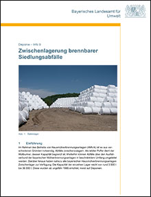 Darstellung des in Bayern einzuhaltenden Stands der Technik bei der Zwischenlagerung nicht gefährlicher Abfälle (Haus- und Sperrmüll und/oder hausmüllähnliche Gewerbeabfälle) im Deponiebereich (innerhalb und außerhalb gedichteter Deponieflächen) aus umweltfachlicher Sicht.| Herausgeber | : | Bayerisches Landesamt für Umwelt |