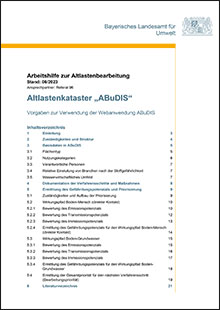 Die vorliegende Arbeitshilfe richtet sich an die für die Altlastenbearbeitung zuständigen Behörden (Kreisverwaltungsbehörden, Wasserwirtschaftsämter, AELF und Regierungen). Sie gibt fachspezifische Hinweise und Vorgaben für die Webanwendung ABuDIS 3.0 (Altlasten-, Bodenschutz- und Dateninformationssystem) (Kataster nach Art. 3 BayBodSchG).Die Arbeitshilfe ersetzt die ehemaligen Anhänge 1 und 2 der Verwaltungsvorschrift zum Vollzug des Bodenschutz- und Altlastenrechts in Bayern (BayBodSchVwV 2000).