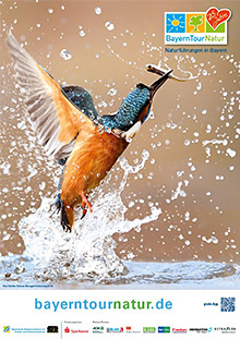 Poster im Format DIN A3 (gefalzt auf DIN A4) mit "Eisvogel"-Motiv zur Bewerbung der Natur- und Umweltbildungsaktion "BayernTourNatur" in der Sommersaison. Mehr zur BayernTourNatur unterwww.bayerntournatur.de