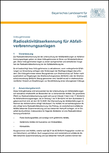 Mit diesen Vollzugshinweisen stellen wir Mindestanforderungen zur Beschaffung und zum Betrieb von Portalmessanlagen zur Radioaktivitätserkennung für Betreiber von Abfallverbrennungsanlagen zur Verfügung. Sie sollen zudem zu einem rechtskonformen und einheitlichen Vorgehen bei Funden beitragen.| Herausgeber | : | Bayerisches Landesamt für Umwelt |