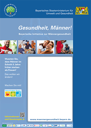 Neben dem vorliegenden Eindruckplakat wurde ein Schmuckplakat zur Initiative Männergesundheit aufgelegt, das Sie unter folgendem Link downloaden bzw. bestellen können: Schmuckplakat zur Bayerischen Initiative Männergesundheit Detaillierte Informationen zur Bayerischen Initiative finden Sie unter folgendem Link: Bayerische Initiative Männergesundheit