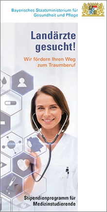 Wir wollen Medizinstudierende frühzeitig für eine spätere Tätigkeit im ländlichen Raum gewinnen. Dazu fördern wir angehende Medizinerinnen und Mediziner finanziell und ideell, damit sie ihre Weiterbildung im ländlichen Raum absolvieren und danach fünf Jahre dort ärztlich tätig sind. Sollten Sie sich also vorstellen können, als Landarzt oder Landärztin zu arbeiten, bewerben Sie sich bei uns um ein Stipendium.Herausgeber | : | Bayerisches Staatsministerium für Gesundheit und Pflege |
