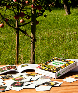 Das neue Streuobst-Memo ist da! Das beliebte Spiel für Kinder und Erwachsene erscheint in seiner 4. Auflage in völlig neuem Stil und bietet ein noch ansprechenderes Spielerlebnis. Mit dem Streuobst-Memo der Bayerischen Akademie für Naturschutz und Landschaftspflege (ANL) und dem Bezirksverband für Gartenkultur und Landespflege e. V. Oberbayern können Kinder und Erwachsene spielerisch unsere heimischen Obstsorten entdecken. Das Spiel besteht aus 36 Bildpärchen regional bekannter Streuobstsorten sowie einem Begleitheft. Das Heft erläutert wissenswerte Details zu jeder Sorte, wie Herkunft, Reifezeitpunkt, Ertrag, Wuchs, Standort und Verwendung. Gespielt wird nach den üblichen Memo-Spielregeln, wobei es vor allem darum eght, die typischen Unterschiede zu erkennen. Das Spiel ist einzigartig in Deutschland und macht auf spielerische Weise biologische Vielfalt erlebbar.