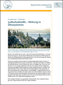 Luftschadstoffe können alle Komponenten und Prozesse eines Ökosystems verändern, also Pflanzen, Tiere und unbelebte Substanzen wie Boden oder Wasser. Mögliche Folgen sind z. B., dass ein Ökosystem seine Puffer- und Filterfunktion verliert oder seltene Arten dort nicht mehr überleben. Über Nahrungs- oder Futterpflanzen können Schadstoffe in die Nahrungskette gelangen und auch die menschliche Gesundheit belasten. Diese Publikation beschreibt die Wirkungen von Luftschadstoffen auf Ökosysteme.Herausgeber | : | Bayerisches Landesamt für Umwelt |