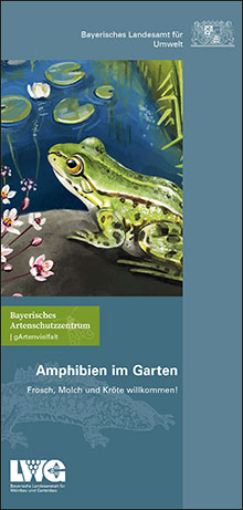 Verschiedene Arten von Amphibien sind auch in unseren Gärten anzutreffen. Der Flyer "Amphibien im Garten" gibt Informationen zur Artengruppe und wie Sie im eigenen Garten geeignete Strukturen für sie schaffen können. Das ausfaltbare Poster auf der Rückseite zeigt diese Strukturen und lässt sich durch die Poster zu Reptilien und Igeln im Garten zu einer Gesamtansicht ergänzen.