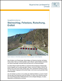Über Schäden durch Rutschungen, Steinschläge und Felsstürze berichten die Medien immer wieder. Nicht nur in fernen Ländern, auch in Bayern werden Straßen verschüttet und Häuser beschädigt. Vereinzelt kommt es leider auch zu Personenschäden.An steilen Hängen besteht die Gefahr von plötzlichen Sturzereignissen. Rutschungen können dagegen auch an sanften Hängen vorkommen. Selbst im flachen Gelände ist man nicht immer sicher, nämlich dann, wenn unterirdische Hohlräume einstürzen.