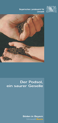 Durch eine selbstdarstellerische Beschreibung des Bodens wird der Bodentyp Podsol der breiten Öffentlichkeit gut verständlich näher gebracht. Das Faltblatt geht dabei kurz auf die Nutzung, die Entstehung und die Eigenschaften der Podsole ein und veranschaulicht die Hauptverbreitungsgebiete der Podsole in Bayern.Herausgeber | : | Bayerisches Landesamt für Umwelt |