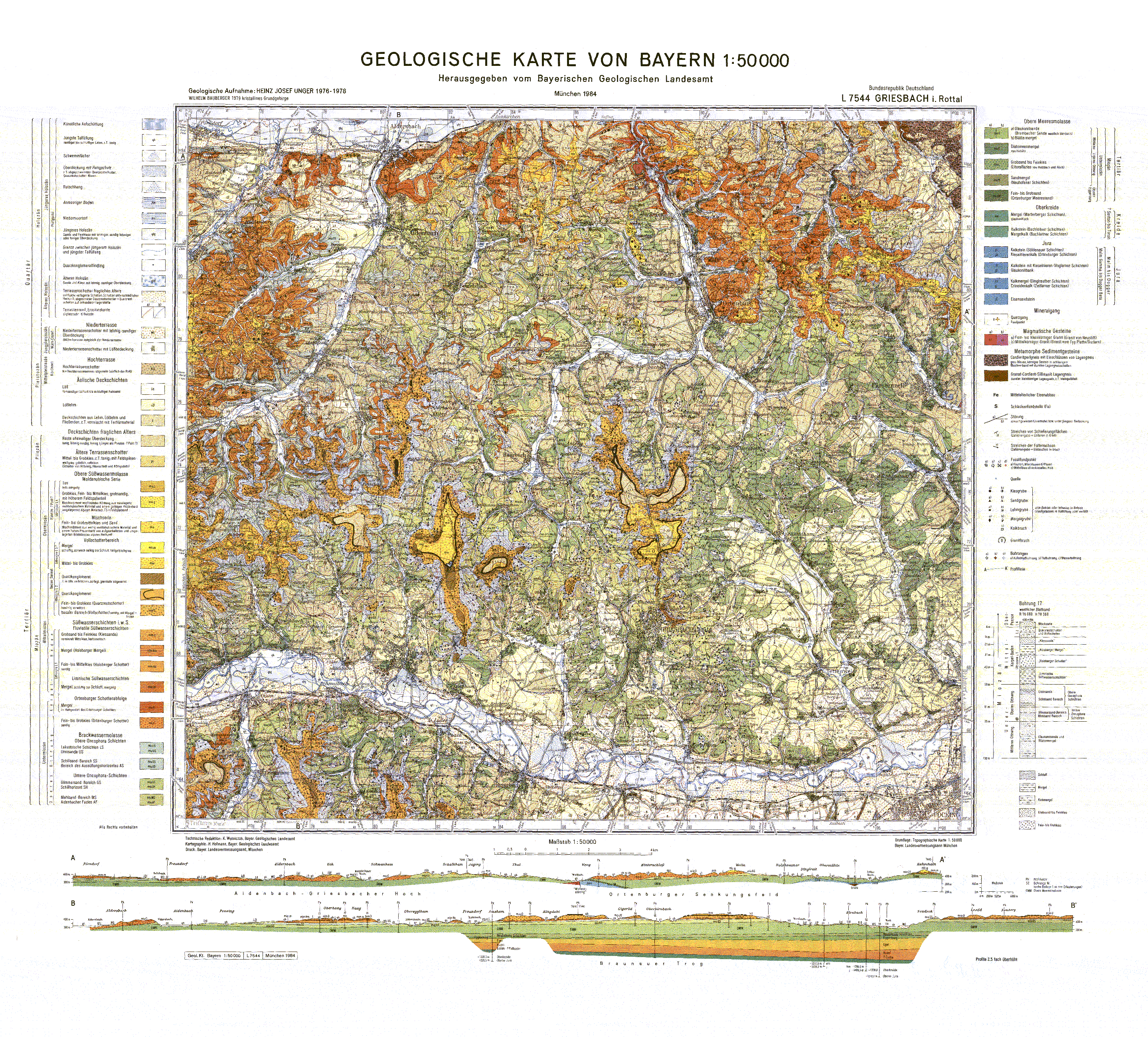 Geologische Karte 1:50 000 L7544 Griesbach i. Rottal