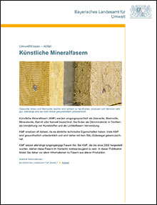 Künstliche Mineralfasern (KMF) sind eine große Gruppe von Fasern, die synthetisch hergestellt werden. Sie werden häufig als Isoliermaterial eingesetzt, aber auch für textile Zwecke, für die Verstärkung von Kunststoffen oder für optische Zwecke (Lichtleitfasern) verwendet. KMF besitzen ähnliche technische Eigenschaften wie Asbest. Wie Asbest setzen auch die KMF Fasern frei. Diese Fasern können je nach Materialzusammensetzung nicht oder unterschiedlich stark krebserzeugend sein. In dieser Publikation finden Sie Informationen über künstliche Mineralfasern.| Herausgeber | : | Bayerisches Landesamt für Umwelt |