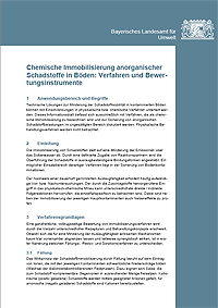 Die vollzugsseitige Bewertung von Immobilisierungsverfahren zur Sicherung von Bodenkontaminationen ist vielfach erschwert: vage Verfahrensbeschreibungen, unzureichende Wirksamkeitsnachweise bzw. fehlende Angaben zur Dauerhaftigkeit kennzeichnen die Situation. Das Infoblatt gibt einen Überblick über die wichtigsten Verfahrenstypen und -mechanismen und enthält eine Checkliste zur Erstbewertung.| Herausgeber | : | Bayerisches Landesamt für Umwelt |