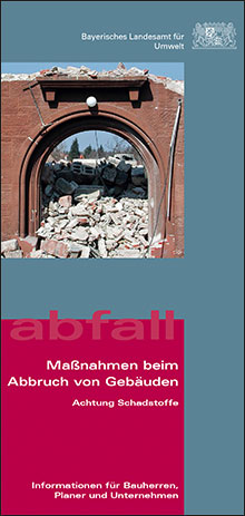 Das Faltblatt enthält einführende und grundlegende Informationen zum Rückbau von schadstoffbelasteten Gebäuden. Es richtet sich v. a. an Bauherren, Planer und Unternehmer.| Herausgeber | : | Bayerisches Landesamt für Umwelt |