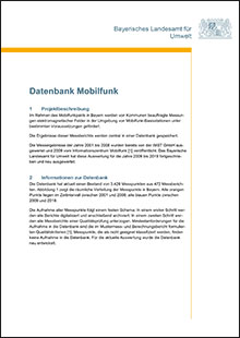 Das Infoblatt Mobilfunkdatenbank Bayern bietet einen aktuellen Überblick der Ergebnisse.