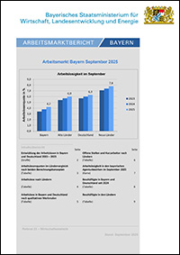 Diese Broschüre bietet einen Überblick über die monatliche Entwicklung auf dem bayerischen Arbeitsmarkt hinsichtlich Arbeitslosigkeit und Beschäftigung.Herausgeber | : | Bayerisches Staatsministerium für Wirtschaft, Landesentwicklung und Energie |