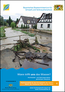 Für Bayern wurden zehn regionale Varianten der Broschüre "Wann trifft uns das Wasser? Hochwasser- und Starkregenrisiken gemeinsam reduzieren" erstellt: