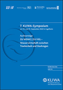 Beim 7. KLIWA-Symposium am 14. Und 15. September 2022 widmeten sich die Fachvorträge unter dem Motto "Zu Wenig - zu viel" dem Thema "Wasserwirtschaft zwischen Trockenheit und Starkregen". Das KLIWA-Heft 24 fasst die Vorträge zusammen. Diese widmen sich dem Klimawandel als gesellschaftlicher und politischer Herausforderung, den Auswirkungen von Trockenheit und Hitze auf das Grundwasser sowie auf aquatische Ökosysteme, den entstehenden Aufgaben für Kommunen und Landwirtschaft durch Starkregen sowie Lösungsansätzen für die Wasserwirtschaft.