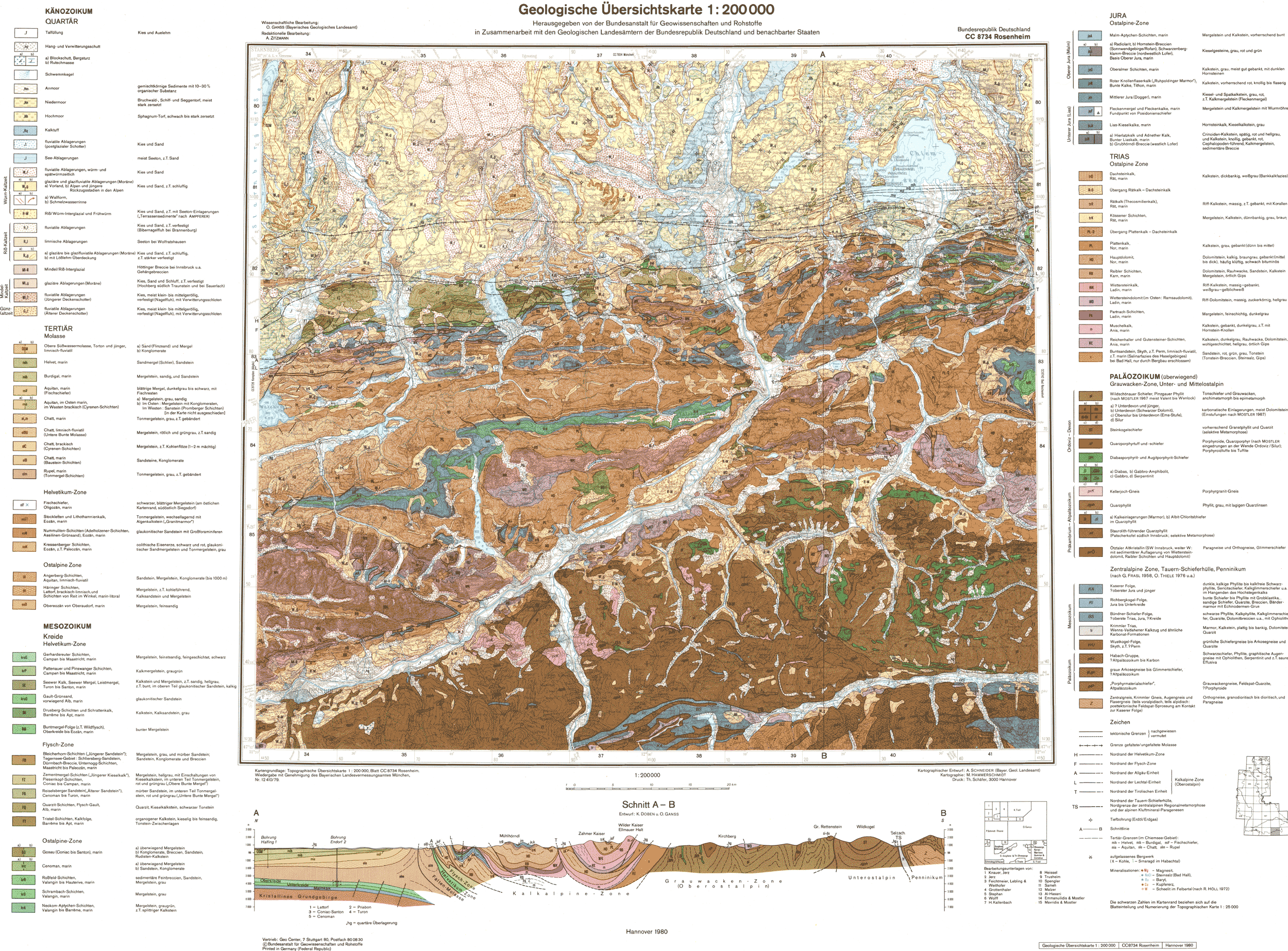 Die Geologische Karte 1:200 000 ist ein Gemeinschaftsprodukt der Staatlichen Geologischen Dienste (SGD) von Deutschland und der Bundesanstalt für Geowissenschaften und Rohstoffe (BGR) in Hannover, was zwischen 1973 und 1994 bearbeitet wurde. Dargestellt sind Stratigraphie, Petrographie und Genese der Gesteine. Zu beachten sind blattschnittbezogene Inkonsistenzen sowohl der Geometrien als auch der geologischen Einheiten, da die einzelnen Kartenblätter aus verschiedenen Bearbeitungszeiträumen stammen. Der Bezug der Vektor-Daten und der Bild-Scans erfolgt über das Produktcenter der BGR.Bezug der Vektor-Daten und der Bild-Scans über: Produktcenter der BGR