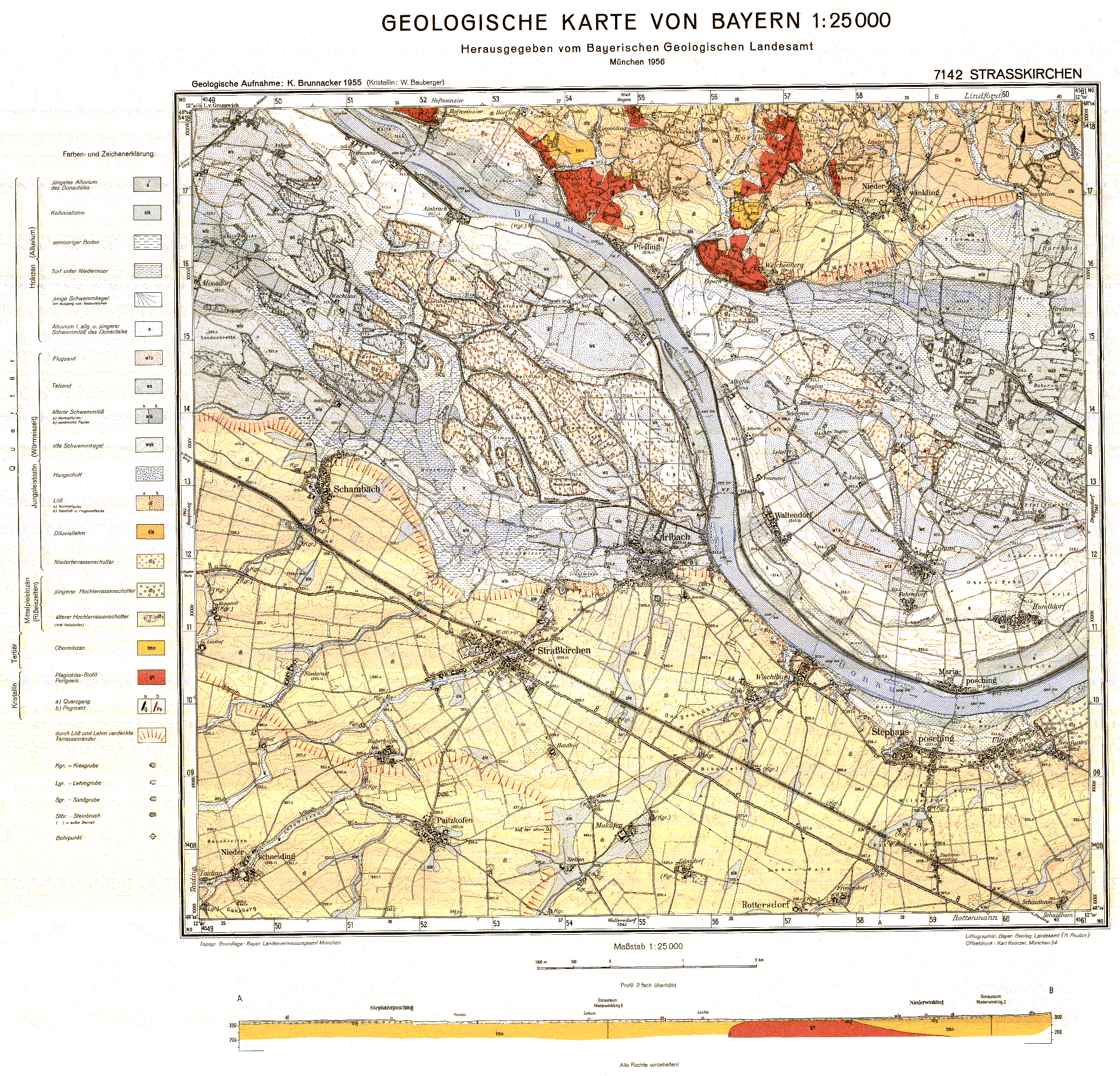 Geologische Karte m. Erläuterung 1:25 000 7142 Straßkirchen