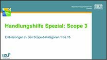 Die Handlungshilfe ist eine Ergänzung zur allgemeinen "Handlungshilfe Klimastrategie" und sollte im Zusammenhang mit dieser angewendet werden. Sie bietet Informationen zu allen 15 Scope-3-Kategorien (indirekte Emissionen aus den vor- und nachgelagerten Aktivitäten) und unterstützt bei der Datenerfassung und Berechnung.