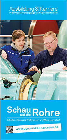 Der Flyer bewirbt die Ausbildung und Karriere in der Wasserversorgungstechnik und Abwassertechnik, insbesondere die umwelttechnischen Berufe: Fachkraft für Wasserversorgungstechnik, Fachkraft für Abwassertechnik und Fachkraft für Rohr- Kanal- und Industrieservice.Der Flyer ist Teil der Infokampagne "Schau auf die Rohre" zur Bewusstseinsbildung der Notwendigkeit der Instandhaltung von Leitungsnetzen.