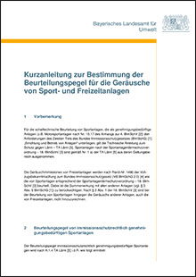 Hinweise und Vereinfachungen zur Bildung der Beurteilungspegel von Sport- und Freizeitanlagen.| Herausgeber | : | Bayerisches Landesamt für Umwelt |