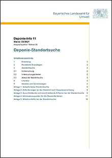 Im Infoblatt wird das Vorgehen bei der Suche nach neuen Deponie-Standorten bis Deponieklasse II beschrieben. Ein umfangreicher Kriterienkatalog mit Angaben zu Informationsquellen dient dazu, den optimalen Standort für eine Deponie zu ermitteln. Das Infoblatt richtet sich sowohl an private als auch an öffentliche Entsorgungsträger sowie andere Interessierte.Wir führen einen Praxis-Check durch. Deshalb bitten wir die Akteure, die das Deponie-Info 11 in der Praxis anwenden, uns an ihren Erkenntnissen teilhaben zu lassen. Diese werden wir bei der Evaluation berücksichtigen. Ihre Zuschriften senden Sie bitte bis spätestens 31. März 2022 an das Landesamt für Umwelt.