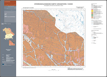 Im Rahmen der hydrogeologischen Landesaufnahme werden hydrogeologische Karten im Maßstab 1:50 000 (HK50) erstellt. Das Kartenwerk umfasst 2 Teilblätter (Blatt 1: Hydrogeologische Grunddaten mit den Hydrogeologischen Einheiten, den Grundwassergleichen und den Grundwasseraufschlüssen; Blatt 2: Schutzfunktion der Grundwasserüberdeckung mit den Deckschichten).Die Legendeneinheiten der HK50 werden in der Kartenrandlegende kurz charakterisiert und in einem Anhang "Daten und Informationen zur digitalen Hydrogeologischen Karte 1:50 000" in Form von Tabellen kurz erläutert.