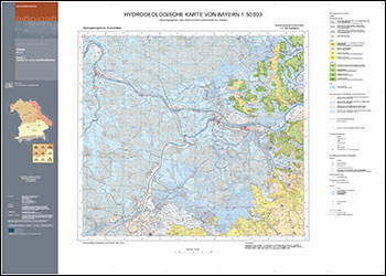 Im Rahmen der hydrogeologischen Landesaufnahme werden hydrogeologische Karten im Maßstab 1:50 000 (HK50) erstellt. Das Kartenwerk umfasst 2 Teilblätter (Blatt 1: Hydrogeologische Grunddaten mit den Hydrogeologischen Einheiten, den Grundwassergleichen und den Grundwasseraufschlüssen; Blatt 2: Schutzfunktion der Grundwasserüberdeckung mit den Deckschichten).Die Legendeneinheiten der HK50 werden in der Kartenrandlegende kurz charakterisiert und in einem Anhang "Daten und Informationen zur digitalen Hydrogeologischen Karte 1:50 000" in Form von Tabellen kurz erläutert.
