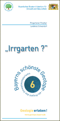 Im Steinbruch bei Pingarten findet man einen Teil der sogenannten "Erzhäuser Arkose". Dieses Gestein erhielt durch eine Verwechslung mit einem ähnlich aussehenden vulkanischen Gestein fälschlicherweise den Namen "Porphyr". Erdgeschichtliches Ausflugsziel, auch für den Laien verständlich dargestellt. Das Faltblatt beantwortet grundsätzliche Fragen: Wie und wann entstand der Geotop und warum ist er von Bedeutung. Mit Photo, vereinfachter geologischer Umgebungskarte und Wegbeschreibung.Vor Ort erläutert eine Schautafel den Geotop (PDF-Teil 2).
