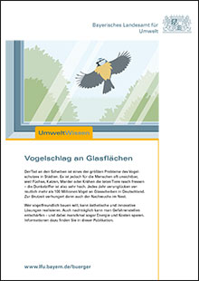 Spiegelnde Fassaden gelten als repräsentativ, große Fensterscheiben bringen Licht ins Haus, gläserne Wind- und Lärmschutzwände erhalten die Sicht ins Grüne. Für Vögel aber sind Glasscheiben eine tödliche Gefahr. Jährlich verunglücken so Millionen Vögel, die meisten an den Fensterscheiben von Wohnhäusern. Fast jeder hat schon mal einen toten Vogel unter seinem Fenster gefunden: Tiere, die er vielleicht im Winter noch am Futterhäuschen oder im Frühjahr beim Nestbau beobachtet hat.| Herausgeber | : | Bayerisches Landesamt für Umwelt |