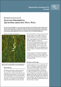 Dieses Merkblatt Artenschutz stellt eine im Rahmen des Artenhilfsprogramm Botanik des Bayerischen Landesamtes für Umwelt (LfU) bearbeitete Pflanzenart vor. Neben ihren Merkmalen wird ihre Ökologie, Biologie und Verbreitung vorgestellt sowie über den Schutzstatus als auch die zugrunde liegenden Gefährdungsursachen informiert. Darüber hinaus liegt ein Schwerpunkt auf der Beschreibung von Ansätzen, wie der Art konkret durch Schutzmaßnahmen geholfen werden kann.Die Sommer-Wendelähre (Spiranthes aestivalis) ist eine konkurrenzschwache Orchidee mit auffällig gedrehtem Blütenstand. Sie wächst in kalkreichen Niedermooren des voralpinen Hügel- und Moorland. Sie ist durch den Verlust ihrer Lebensräume aufgrund von Entwässerung, Nutzungsaufgabe und Nährstoffanreicherung stark gefährdet. Sie ist im Anhang IV der FFH-Richtlinie aufgeführt.