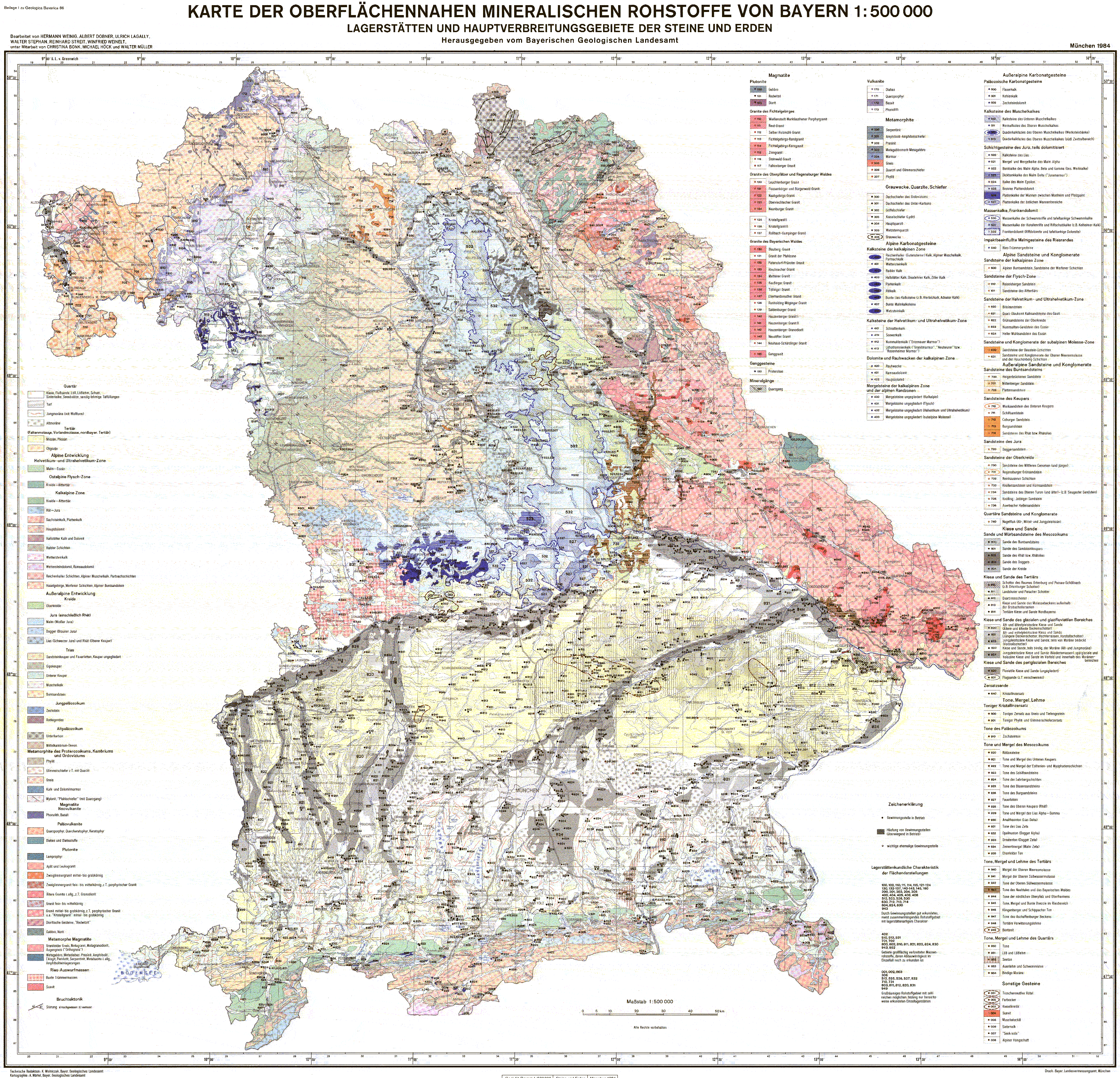 Geologica Bavarica mit Rohstoffkarte Band 86: Oberflächennahe mineralische Rohstoffe von Bayern. Lagerstätten und Hauptverbreitungsgebiete der Steine und Erden.
