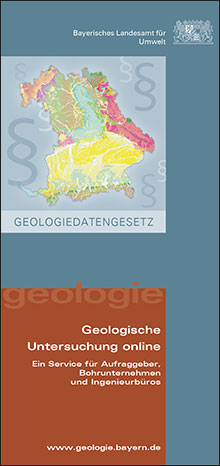Mit der neuen Anzeigeplattform "Geologische Untersuchung online" können Bohrungen, geophysikalische Messungen und alle anderen geologischen Untersuchungen innerhalb der Landesfläche Bayerns nach Geologiedatengesetz schnell und einfach gemeldet werden. Der Flyer informiert über die gesetzliche Grundlage, Hinweise zur Vorgehensweise und Wissenswertes rund um die Erhebung von geowissenschaftlichen Daten am Bayerischen Landesamt für Umwelt.| Herausgeber | : | Bayerisches Landesamt für Umwelt |